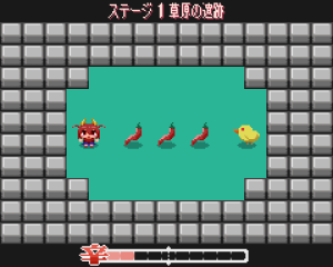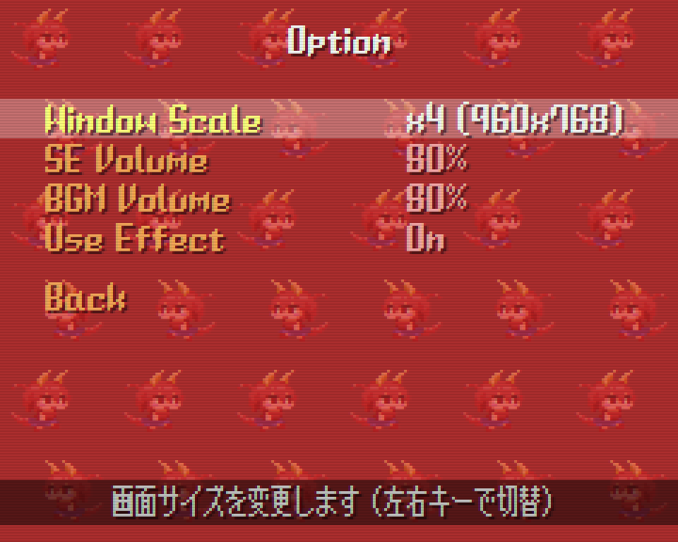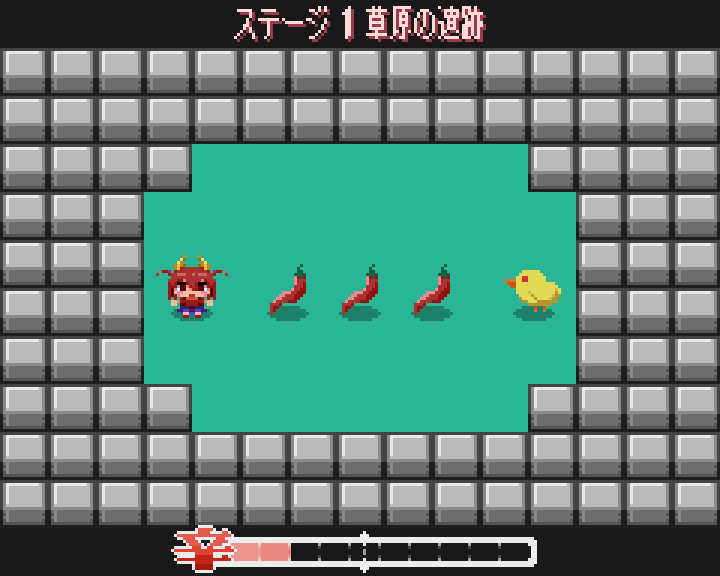 ラフのままだったタイトル画面のキャラ絵の清書、タイトル画面に降らせるとうがらしのドット絵、オプション画面などをにぎやかに、exeアイコン作成などをして、提出版のリリースとなりました。