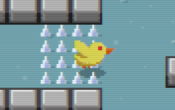 あとは、炎だけが通過できるブロック(トゲ床)も追加。これのおかげで「フライングダークひよこ」が誕生することに。