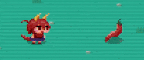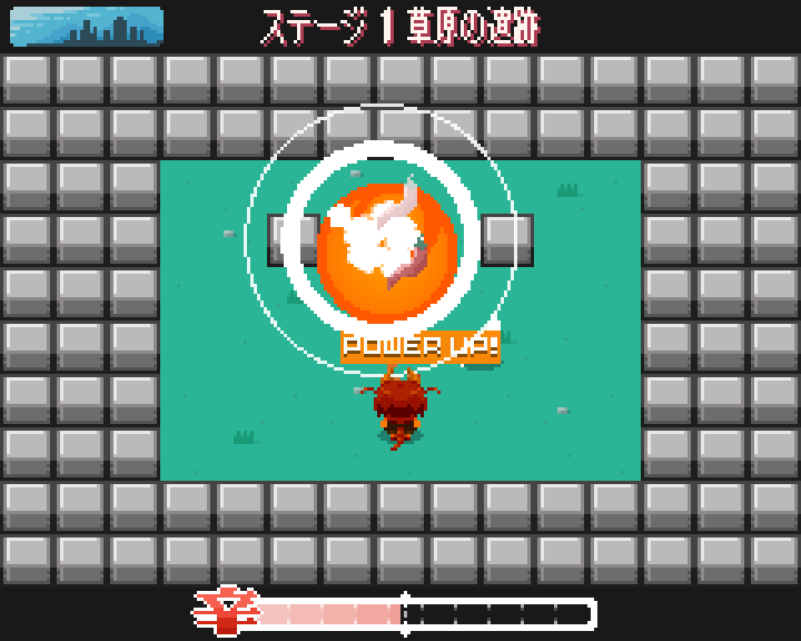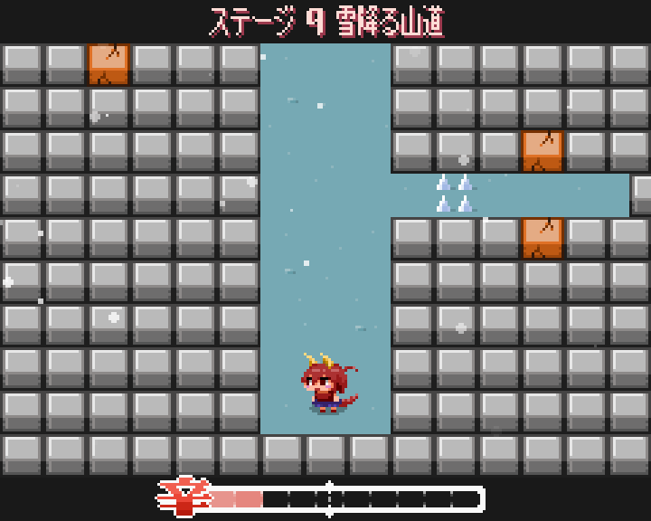 このあたりから、このゲームはただのアクションじゃなくてパズル色を押し出した方がいいな、と思い始めました。というのも、炎を吐いてアイテムを取るというアクションのみで、どのように難易度調整をする? 敵の挙動や種類、アイテムを追加? と考え始めた時に、なかなかこれだ!というものが思い浮かばず。いや、実は最初からパズルゲームにしたくて、それ以外の選択肢が考えられなかったのかもしれません。その辺は今となってはもう思い出せないのですが、とにかくアクションパズルで、超簡単なのを作って、だれでも最後までたどり着けるようにしよう!と思いました。