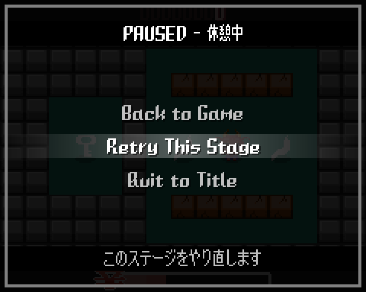 また、ステージ制のパズルなのだから、ゲームオーバーもなしで、何回もやり直せるようにしよう……ってことでポーズメニューを実装、リトライ機能を追加。このちょっとした機能追加の副次効果で、地味に開発効率も上がりました。